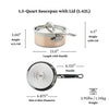 An image of a CopperBond 1.5-quart saucepan, ideal for induction use. It is 3 inches high without the lid and 4.5 inches with it, with a total length of 13 inches including the handle, which measures 6.125 inches. The saucepan has a diameter of 6.875 inches and weighs 2.95 pounds.
