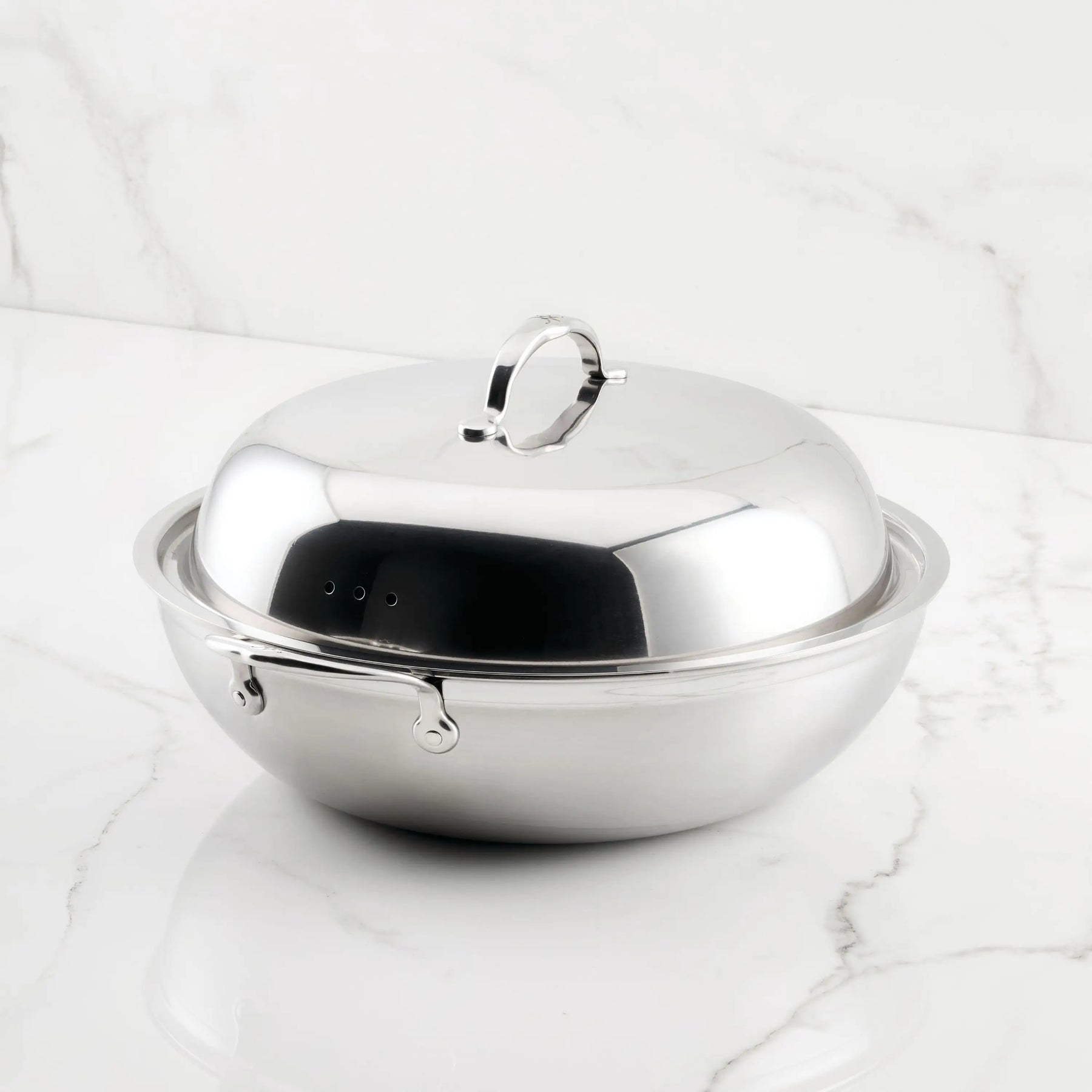 Brushed Clad Stainless Steel Wok with Dome Lid, 14-Inch