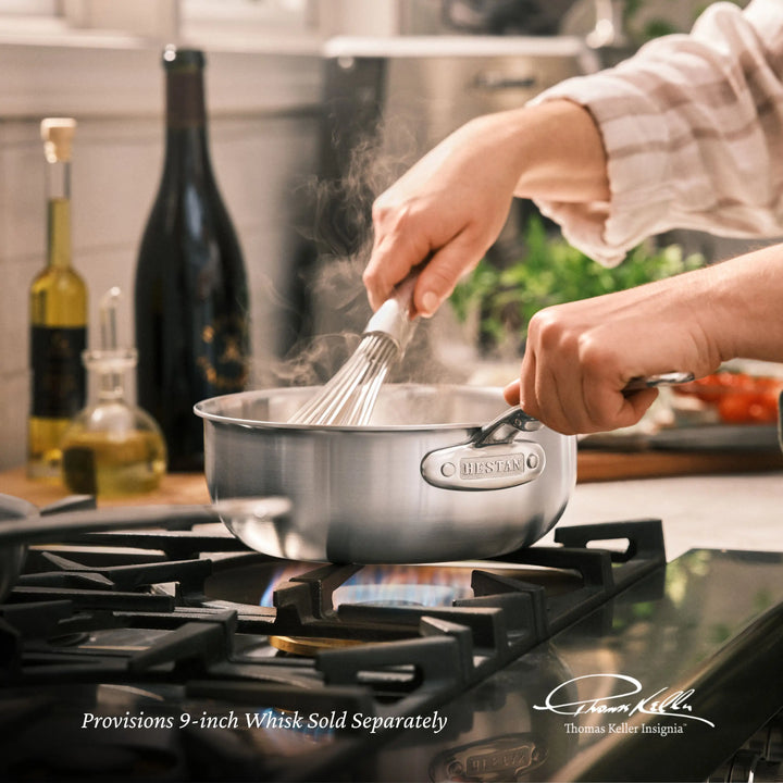Both our ProBond and Thomas Keller Insignia collections are made of tri-ply 18/10 stainless steel with our exclusive pure aluminum ProCore™ that delivers 35% greater heat conduction.