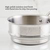 Close-up of the Thomas Keller Commercial Clad Stainless Steel 0.75-Quart Butter Warmer handle, featuring a seamless, chef-inspired design that prevents food and carbon buildup. Chef Thomas Keller&