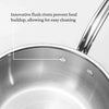 El acero inoxidable forjado garantiza una base más gruesa para una distribución uniforme del calor y paredes laterales más delgadas para un peso más ligero.