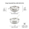 Image of a ProBond Professional Clad 3.5qt Essential Pan with Lid, crafted from stainless steel. Features include a tri-ply aluminum core, 3.5-inch height (5.8 inches with lid), 10-inch rim-to-rim diameter, 17.7-inch length with handle, and weighs 4.6 lbs or approximately 2 kg.