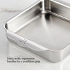 Provisions OvenBond ovenware boasts a brushed stainless steel baking surface and polished exterior that brings a sleek look to the modern kitchen