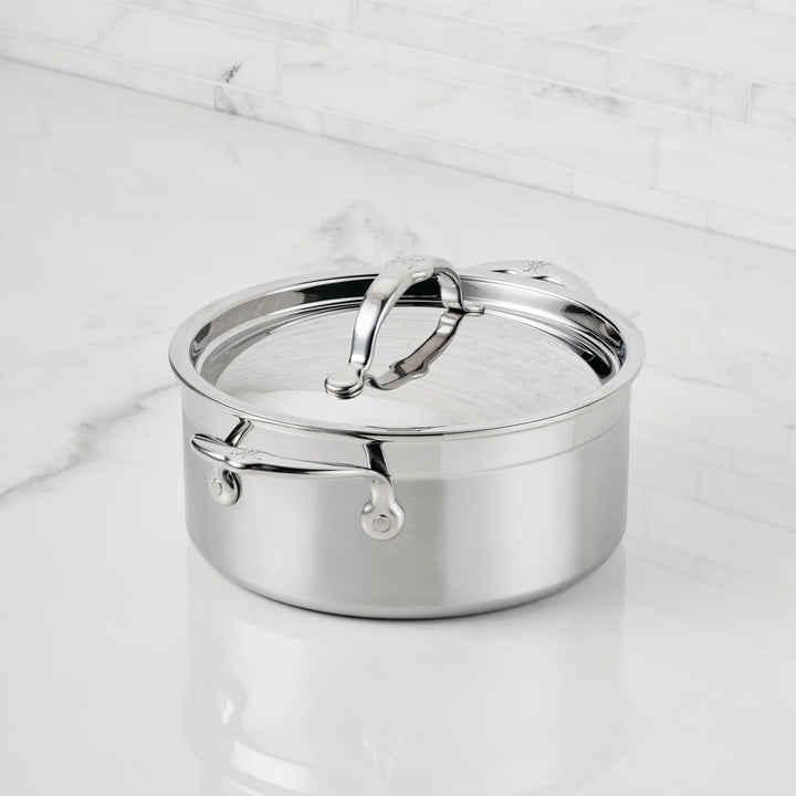 Brushed Clad Stainless Steel Soup Pot with Lid, 3-Quart